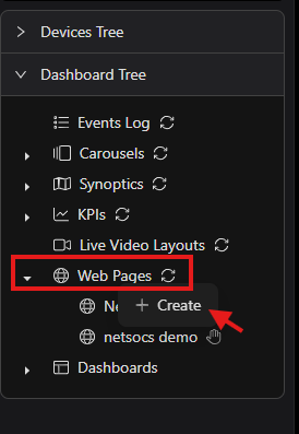 3. Clic derecho sobre "Páginas web" y seleccionar "Crear".