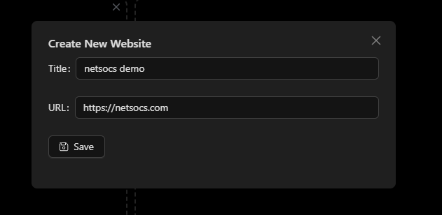 4. Rellenar el formulario con el nombre de la página web y la URL. Luego clic en Guardar.